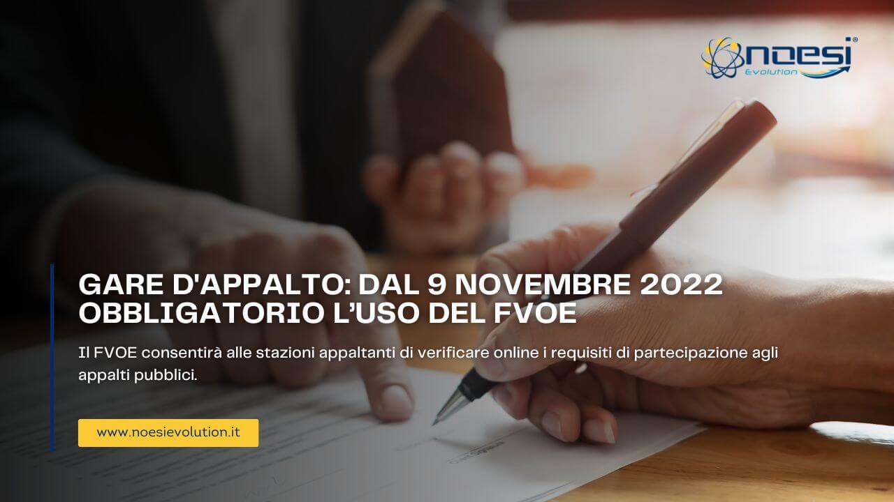 Dal 9 Novembre 2022 è ufficialmente obbligatorio l’utilizzo del Fascicolo Virtuale dell’Operatore Economico (FVOE), che consentirà alle stazioni appaltanti di verificare online i requisiti di partecipazione agli appalti pubblici.